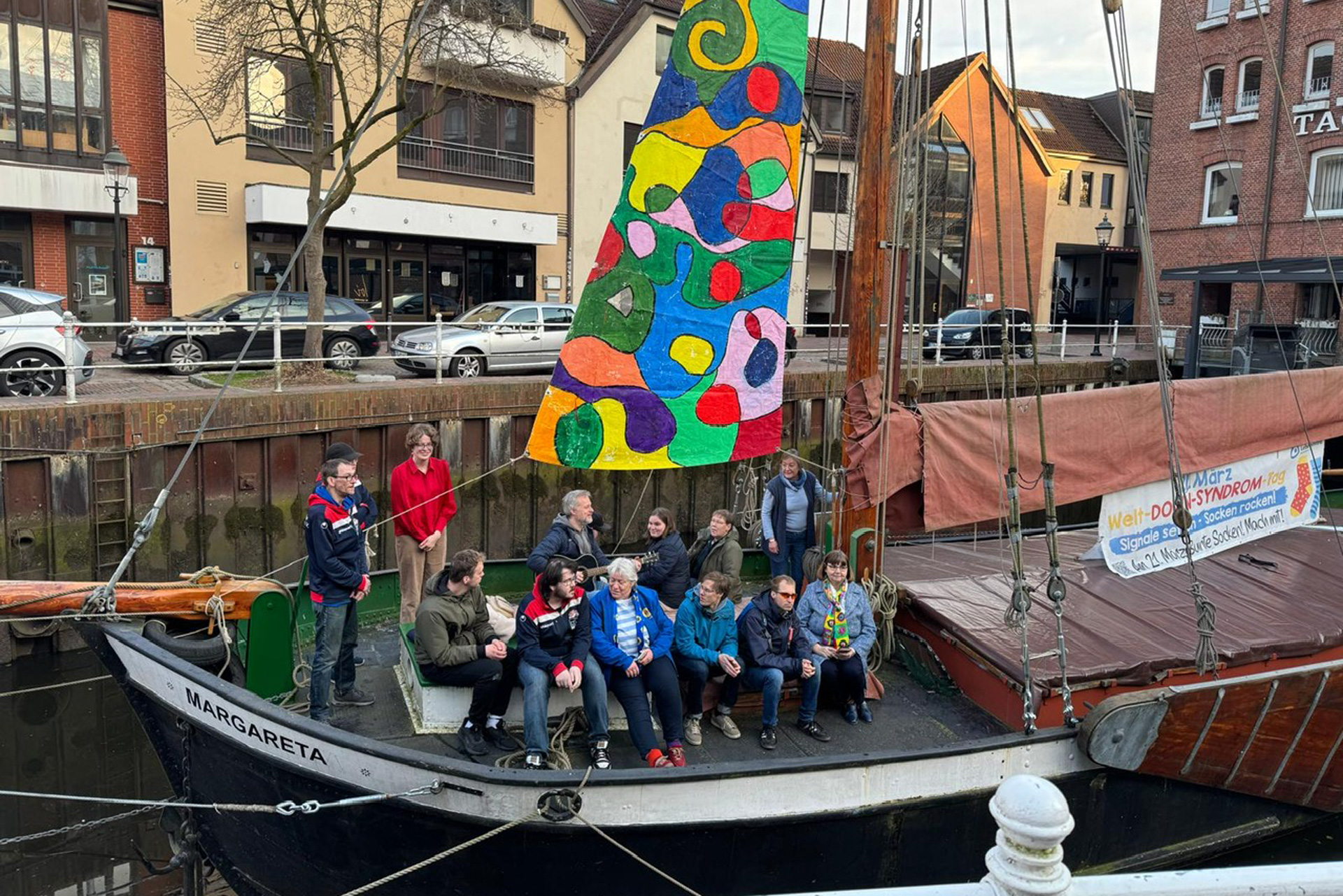 Bunte Socken auf der Margareta – ein Zeichen zum Welt-Down-Syndrom-Tag